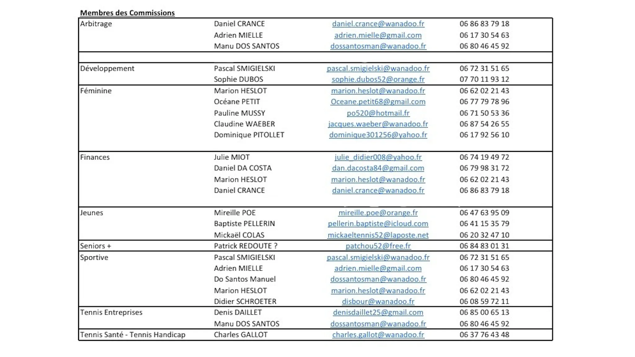 Liste des clubs